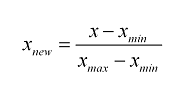 식은 위처럼, x= 관측값, x_min = 최소값, x_max = 최대값 으로 계산하여서 새로운 값을 도출해냅니다.