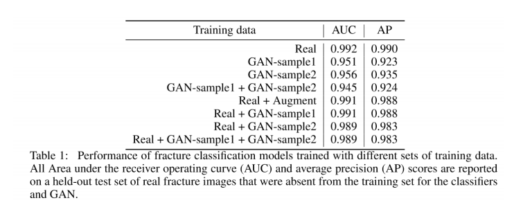 Real image만 사용했을때, AUC가 0.99정도 나왔고, 그 외에 GAN으로 만들어진 sample들로 학습했을때와, real과 gan을 적절히 섞어서 학습했을때 높은 AUC를 끌어낼 수 있었습니다.