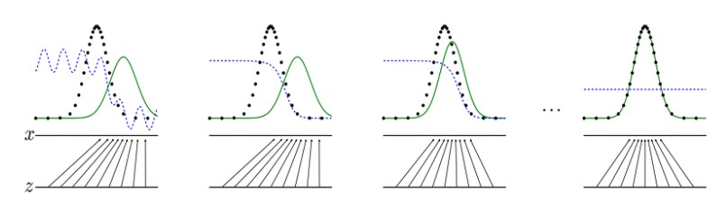 위 그림에서 보듯이, 기존에 분포를 학습해서 데이터의 형태를 찾아나가고 이를 만들어 내는 것입니다.