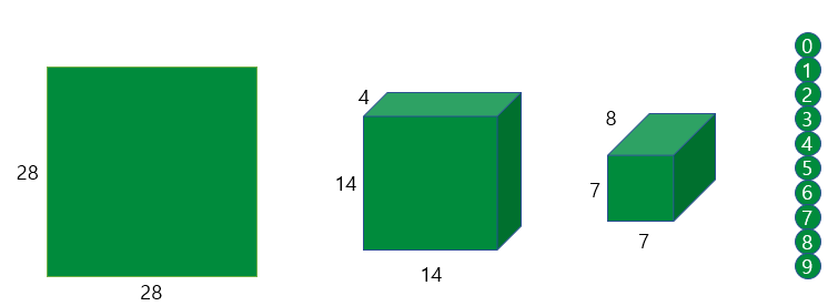 일단 이미지를 4부분으로 쪼개어서 28*28*1의 이미지를 14*14*4의 형태로만들어 주고