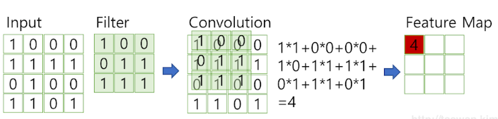 kernel은 filter와 같은데 filter는 이미지 특징을 찾아내기 위한 공용 파라메터이다.